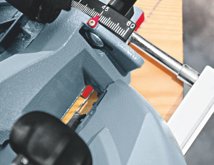 Чітка шкала пристрою для регулювання глибини пропилу полегшує роботу і скорочує витрати часу на заміри рулеткою.