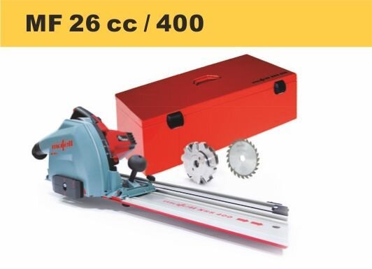 - Фрезер MF 26 cc / 400 жорстко з'єднаний з системою напрямної шини 400. Таким чином, фреза і шина являють собою єдине ціле.