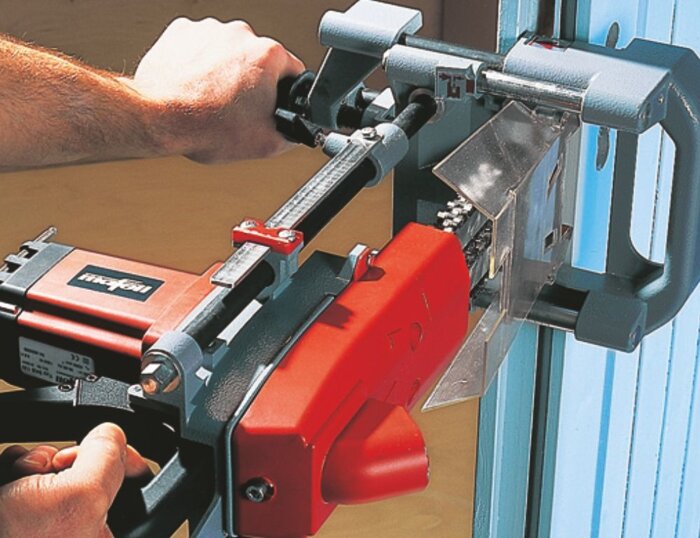 Ця машина дозволяє швидко встановити будь-який замок у міжкімнатних або вхідних дверях.