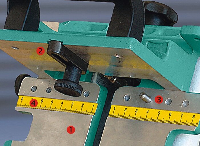 Деталі: 1.Опорна поверхня. 2.Висувний упор. 3.Установчий штифт. 4.Лінійка. |